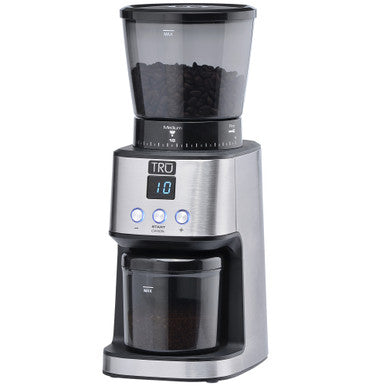 The best coffee starts with the best grounds. The TRU Large Capacity Conical Burr Grinder mills coffee consistently, preserving the natural intended flavors of the coffee bean. The end result is a balanced and aromatic cup of coffee. More than 30 grind settings allow for a precision grind. Customize the coarseness for any type of brewing from French press and cold brew to pour over and drip coffee to espresso and more.