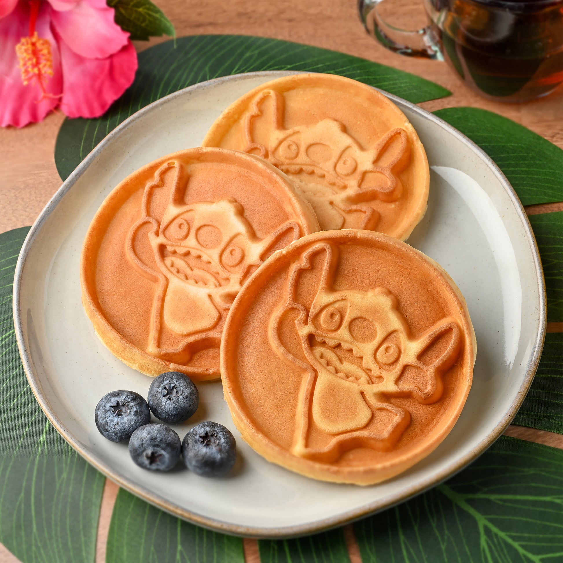 Start your day with a little fun, and sun, with the Lilo & Stitch mini waffle maker. Bakes a 4" round mini waffle featuring everyone's favorite alien. Perfect for sweet or savory waffles. Or make two and build a breakfast sandwich or an ice cream sandwich. The ceramic nonstick coating keeps batter from sticking and wipes down easily.