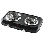 The Toastmaster Electric Double Burner is perfect for potlucks or cooking for crowds. The easy-to-use design is compact for lightweight portability. Variable temperature control knobs works on each burner independently to cook or keep food warm. The burner coils distribute heat evenly, while a handy power indicator light provides added peace of mind and ease during use.