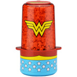Channel your inner superhero with popcorn worthy of an Amazonian Warrior. Ideal for movie night, a birthday party or a cozy night in front of the fire. Pop up to 6 cups of popcorn in less than 5 minutes, then flip the clear domed cover to use as a serving bowl when popping is complete. The simple on/off switch activates the heat and stirring rod. The popper also includes scoops for the ideal oil to kernel ratio.