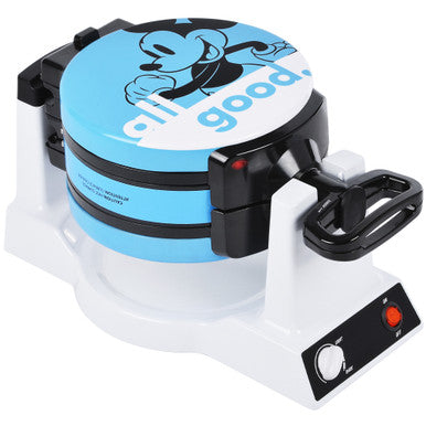 Bring magic to your mornings with Mickey and Minnie waffles. Cook up six golden brown waffles at a time, three Mickey-shaped and three Minnie-shaped. Each waffle is approximately 3½” in diameter and ¾" thick. The double sided rotating action is ideal for even cooking and browning.