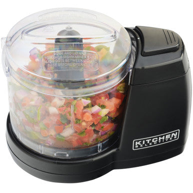 Chop, slice, dice and mince. The Kitchen Selectives 1.5 cup mini chopper is a versatile tool to make meal prep less time consuming. The compact design allows for it to sit comfortably on any counter top, but still has the same power to accomplish all chopping needs.