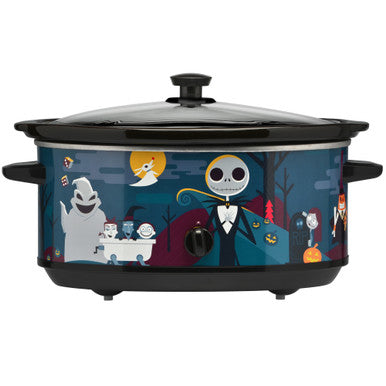 Cook up some tricks and treats in this whimsical slow cooker for your The Nightmare Before Christmas party. Dinner is served after a hauntingly happy day of simmering in this family size slow cooker. The 7 quart capacity is ideal for homemade favorites like roast chicken, beef tenderloin, pulled pork, hearty stews and even desserts.