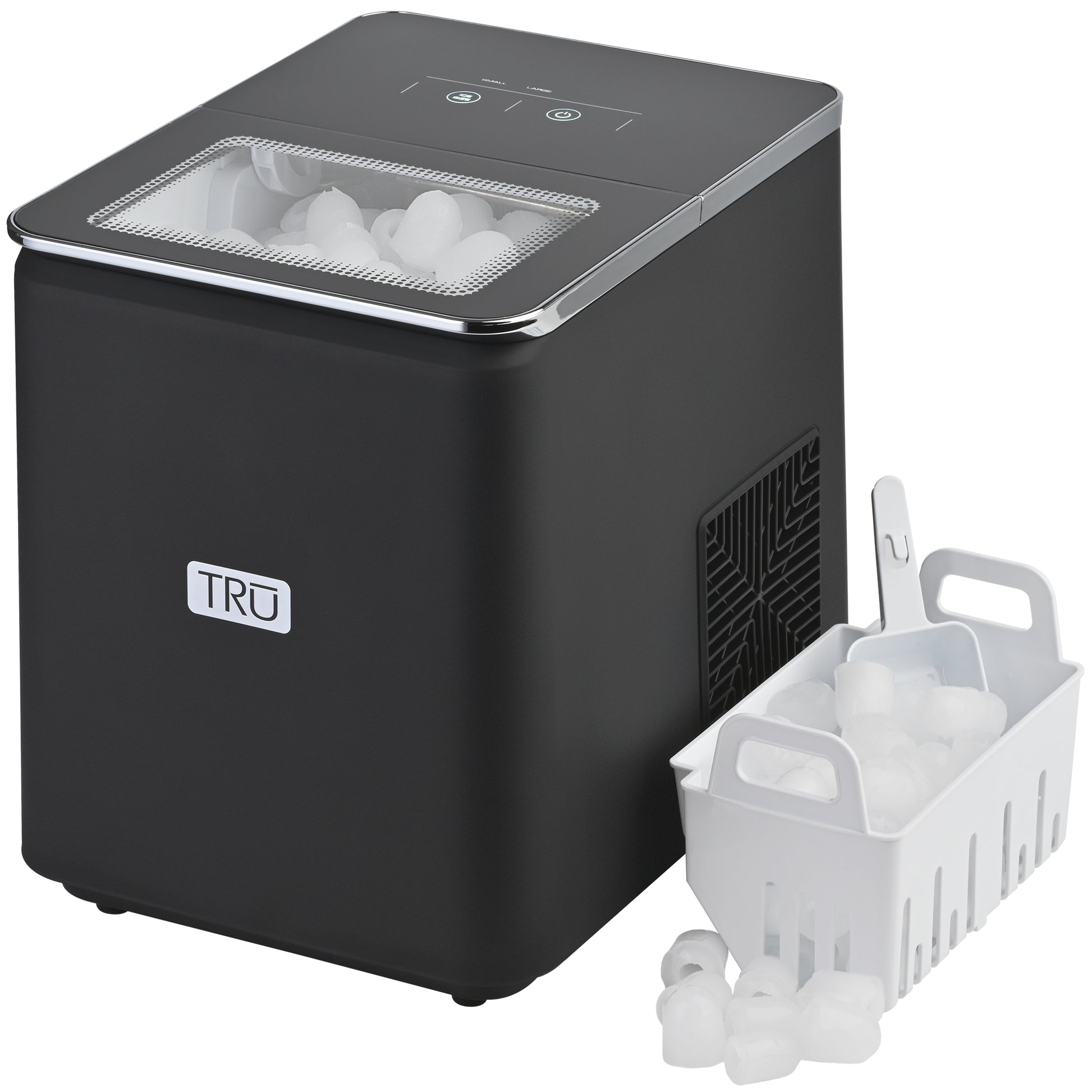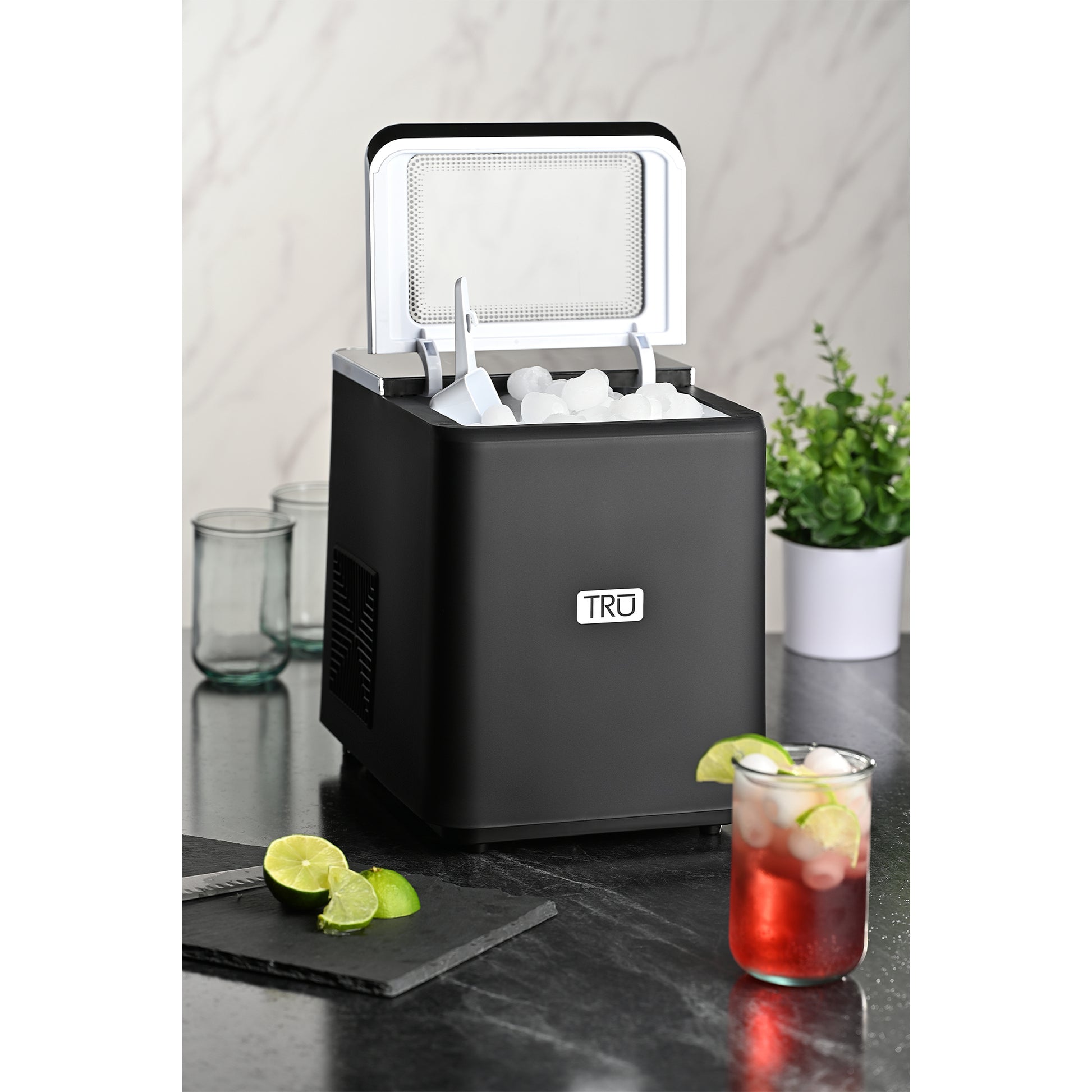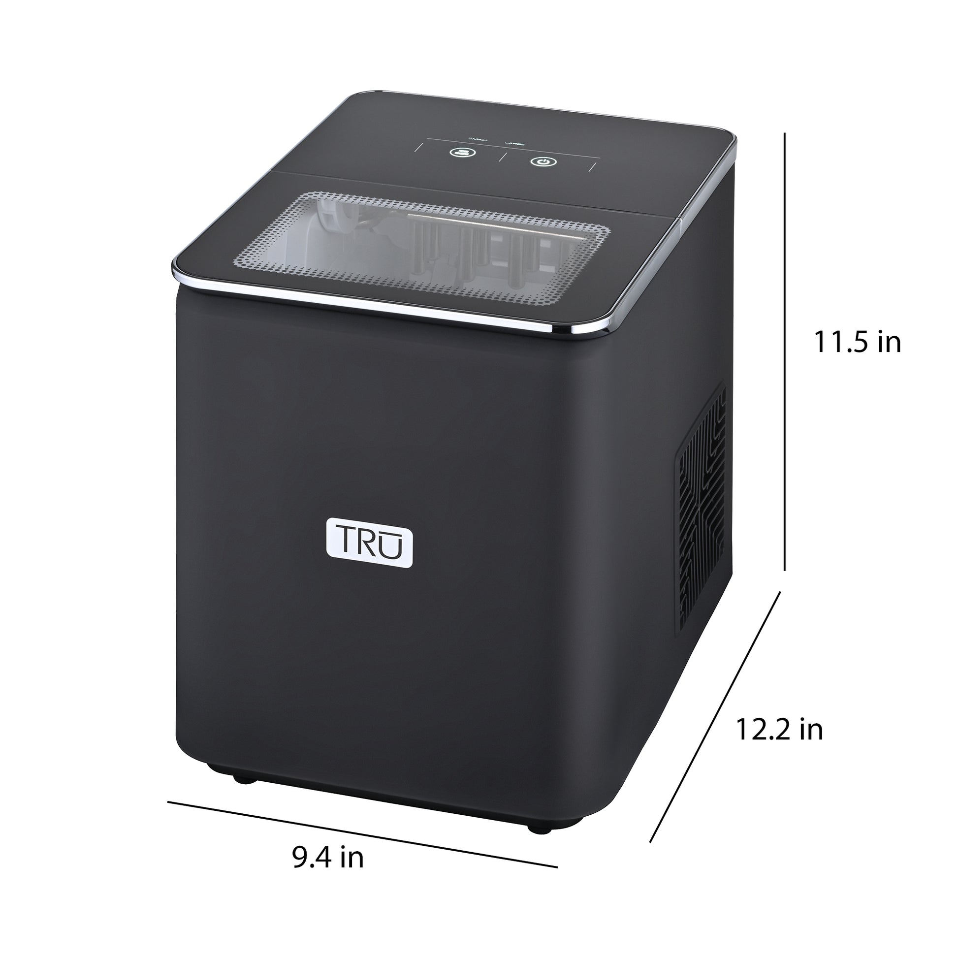 Elevate your entertaining experience with the TRU Countertop Ice Maker. Enjoy the first batch of fresh ice in just 6 minutes, with enough production for 8-10 drinks per hour and 26 pounds of ice in a day. Serve icy, cold drinks with the option of small or large bullet-shaped ice cubes. Featuring a sleek glass design and touch screen controls, this compact and portable ice maker is the perfect addition to any countertop. Say goodbye to plastic ice molds that take hours to freeze, occupy valuable freezer space, and only make enough ice for 2-3 beverages. If you're a frequent party host or love to entertain, the TRU Countertop Ice Maker is your ideal beverage companion.
